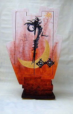 Dieses Schrank-Objekt ist über viele Jahre hinweg langsam gewachsen. Es besteht aus Massivholz Fichte und ist vollständig mit Ölfarben bemalt.